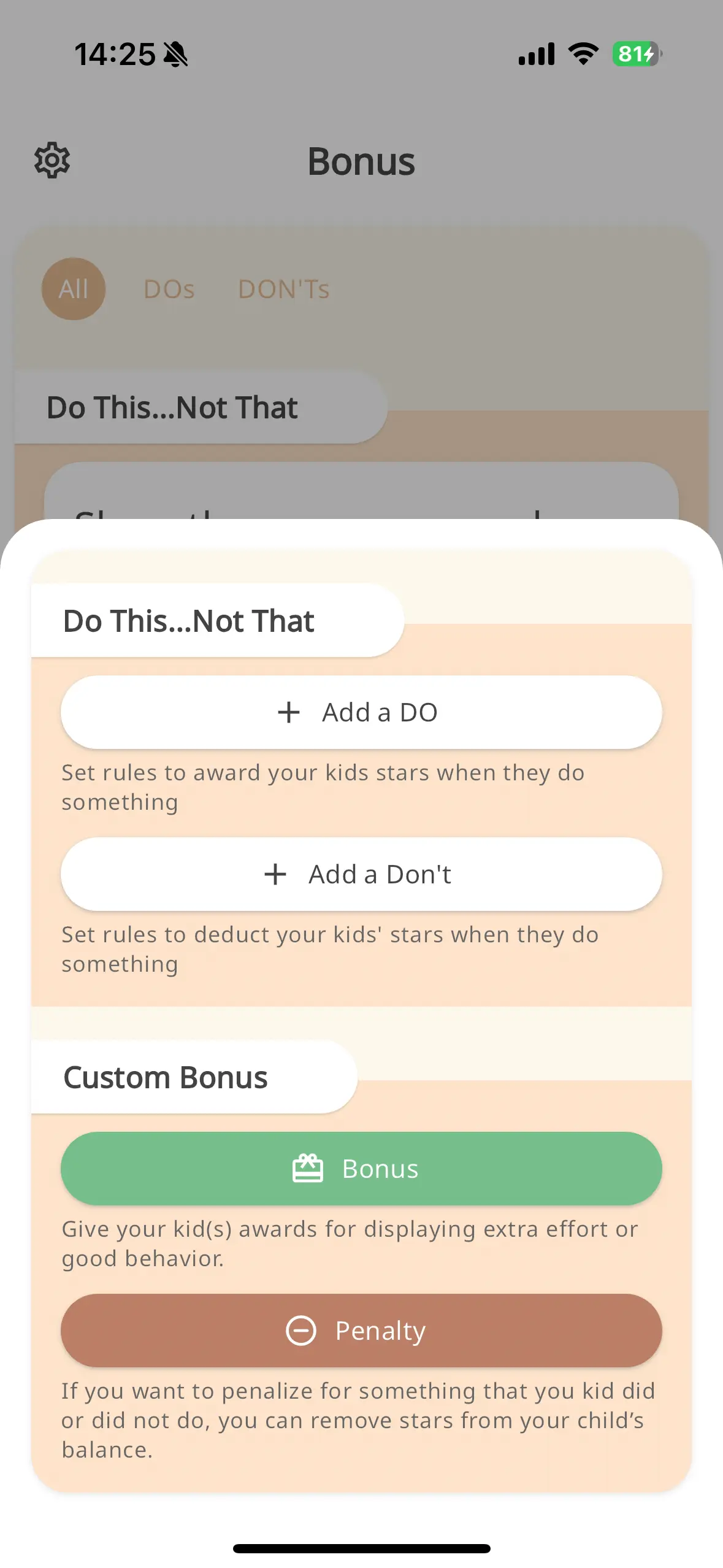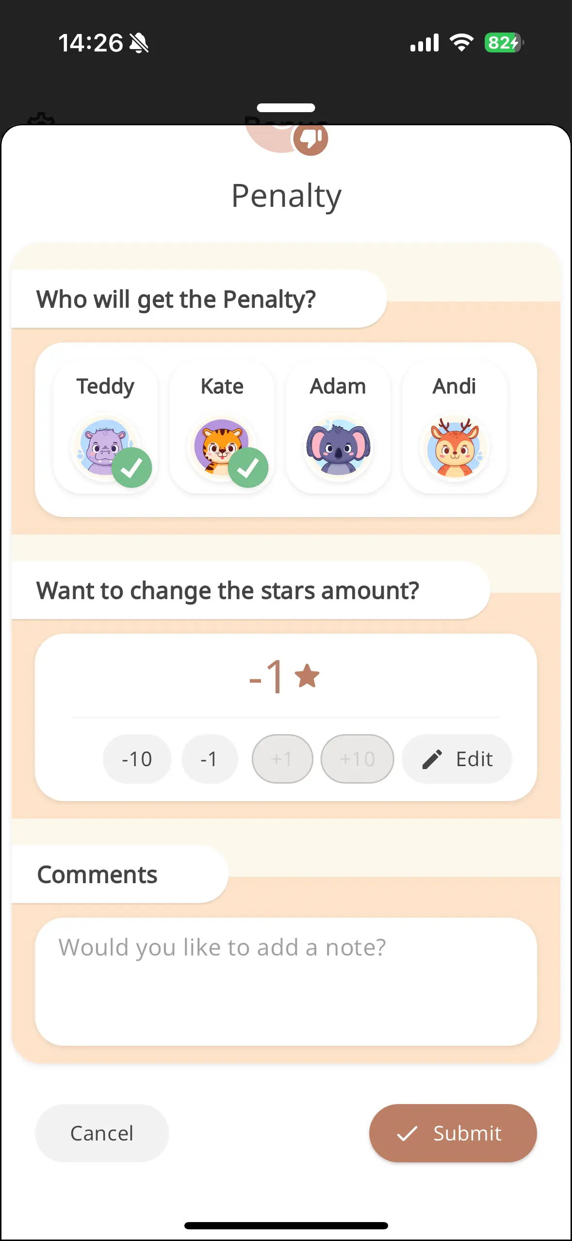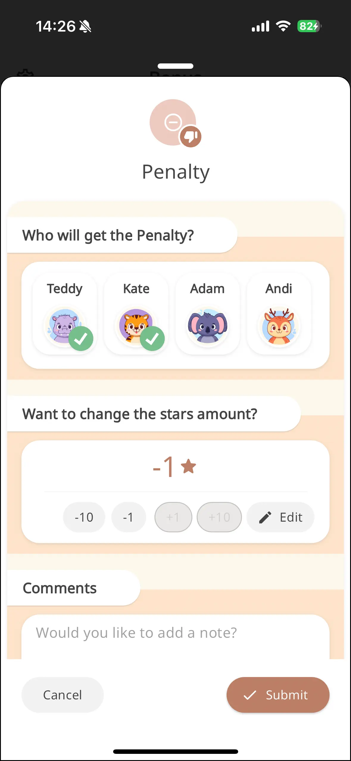 If you want to penalize for something that you kid did or did not do, you can remove points from your child’s account.
