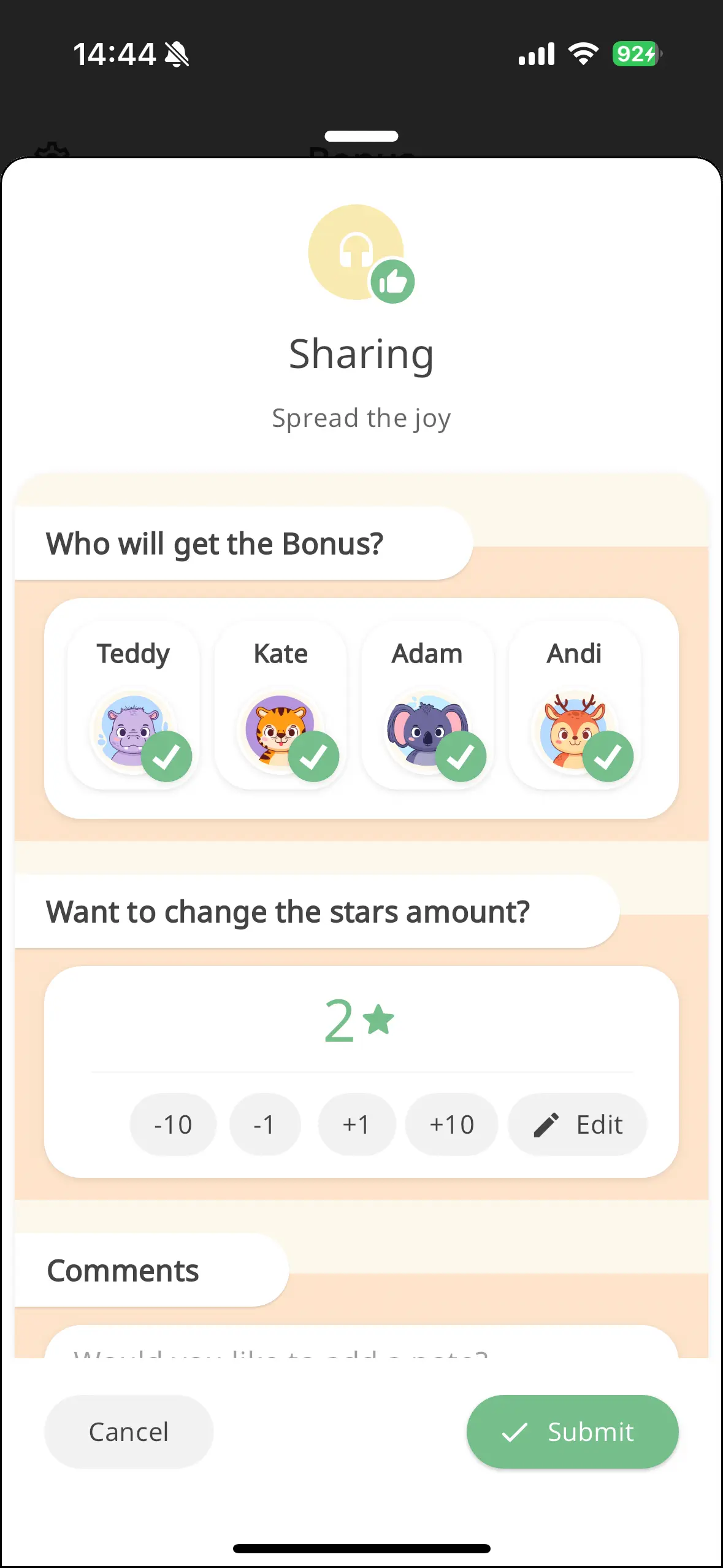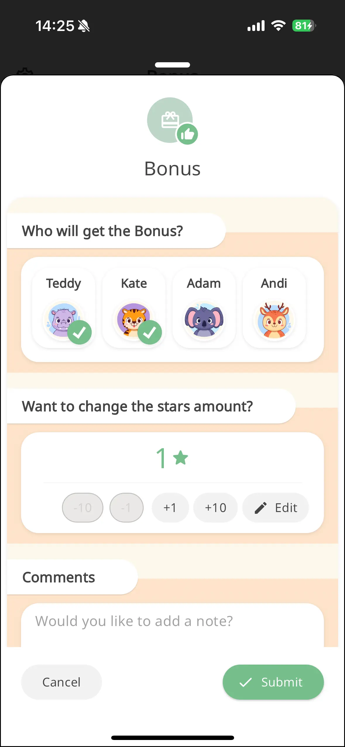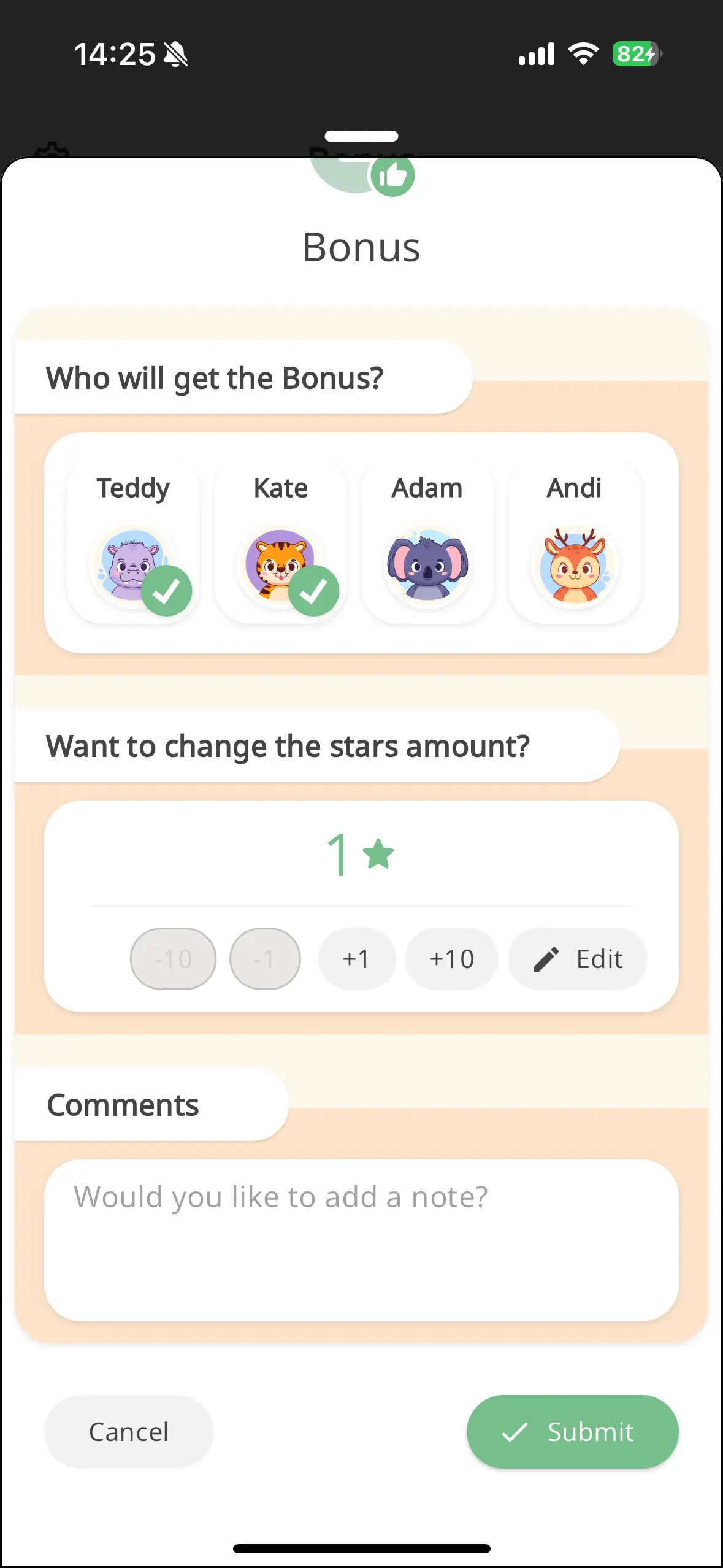 If you want to penalize for something that you kid did or did not do, you can remove points from your child’s account.